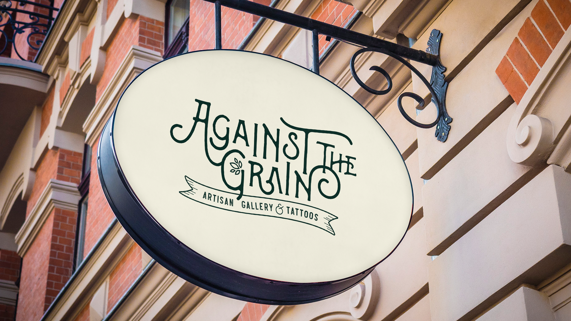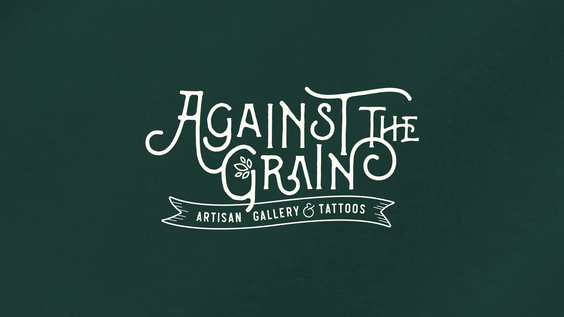 As both an artisan gallery and tattoo parlor, Against the Grain goes, well, against the grain. To demonstrate their professional duality in holding both calm and cutting-edge, we created a logo that conveys a tattoo feel, with floral typography that pays homage to her beautiful restorative tattoo work with breast cancer survivors.