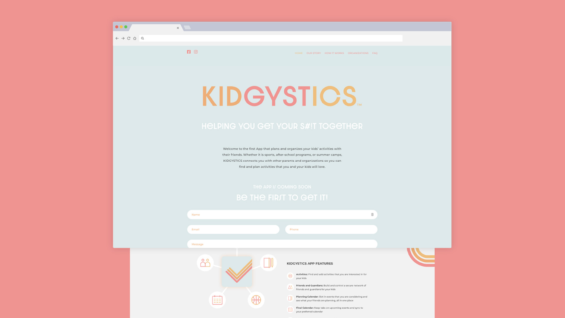 New mompreneurs Lea and Cassia are west coast sisters who came to us with the goal of creating a platform to easily plan and organize kids’ schedules. We worked closely beside the KIDGYSTICS team and offered them our expertise in establishing their place within the industry through branding. After creating the core identity of KIDGYSTICS we set about creating brand expressions including their website, marketing, and print pieces. We even handled their UI app design! Look for it in the apple app store.