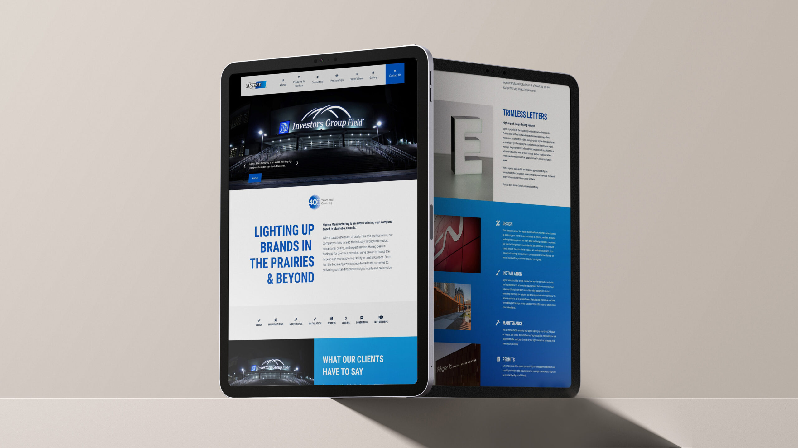 Signex lights up local and national brands with incredible signage installations, storefronts, and facades. We had the opportunity to build a website to showcase their projects, reflecting the high quality work they do.