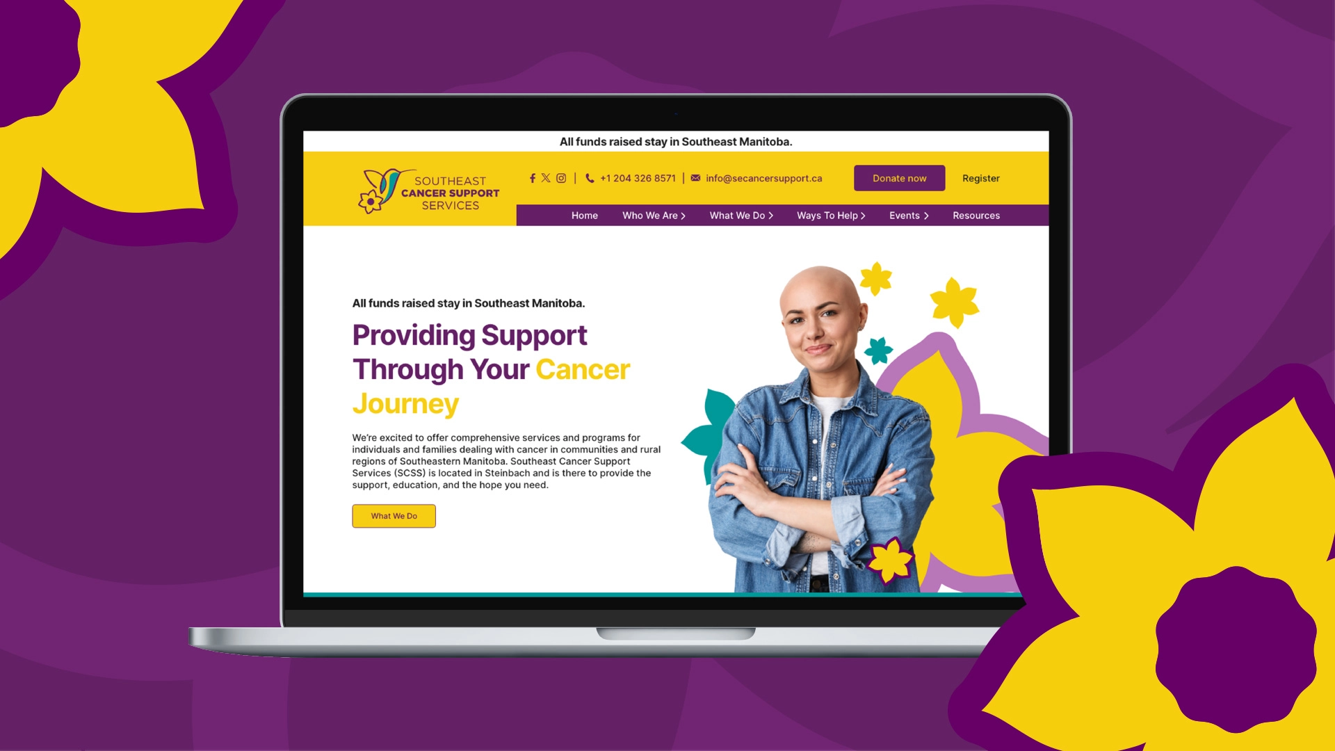 Southeast Cancer Support Services (SCSS) is a new non-profit organization based in Steinbach, Manitoba, dedicated to providing vital support for cancer patients and their families in the rural Southeastern region. SCSS needed a clear, impactful brand identity to reflect their core values of resilience, hope, and care.